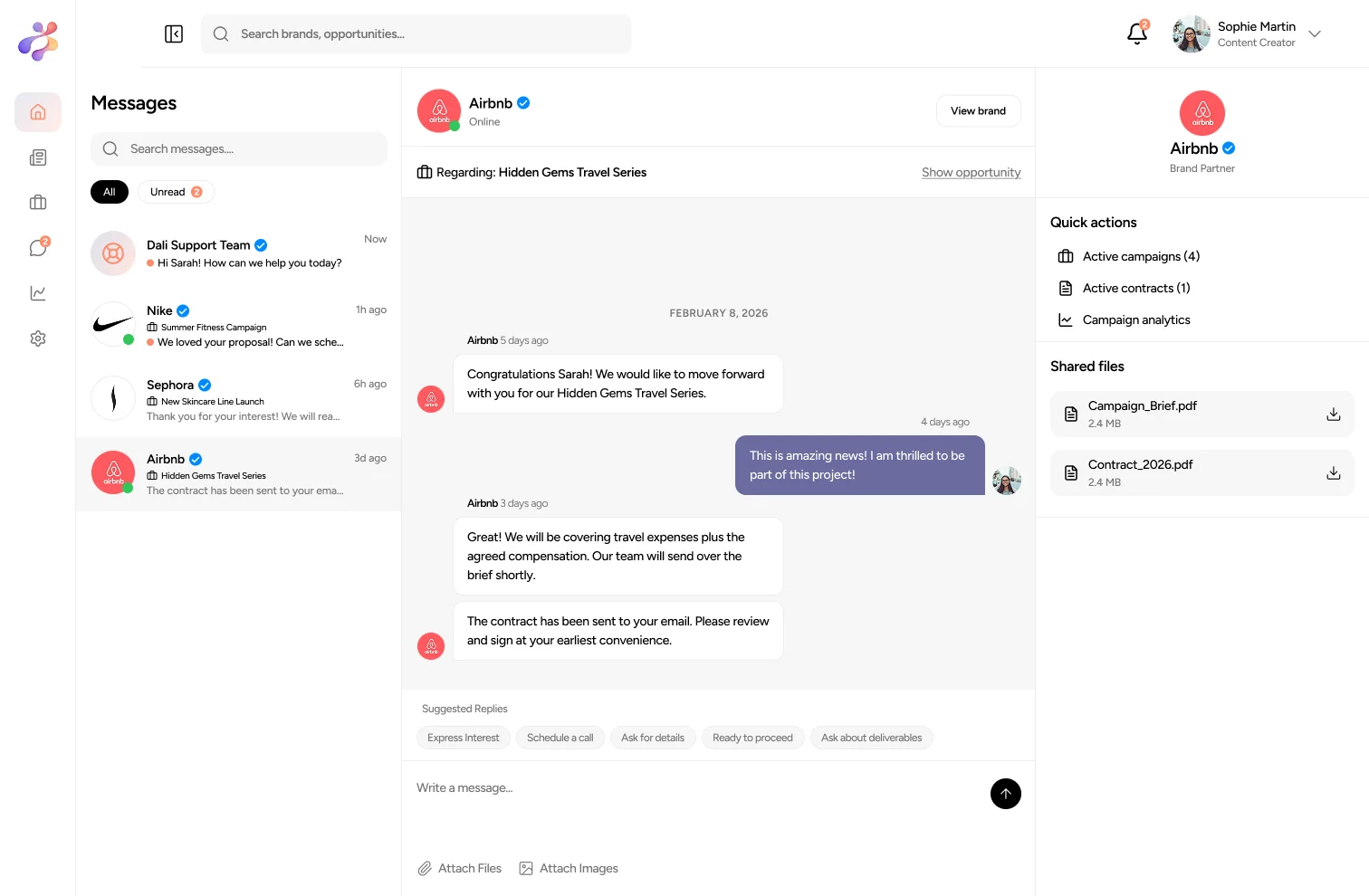 Connect with the right partners, align on terms, and launch campaigns that deliver.
